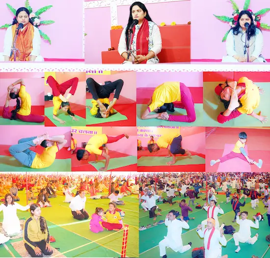 शक्ति चेतना जनजागरण ‘योग साधना’ शिविर का प्रथम दिवस, विशाल प्रवचन पंडाल अपार जनसमुदाय से खचाखच भरा हुआ था और सभी अनुशासित रूप से पंक्तिबद्ध बैठे हुये थे। सभी की आँखें सद्गुरुदेव जी महाराज के आगमन की प्रतीक्षा में बिछी हुई थीं, तभी निर्धारित समय में अपराह्र 02:00 बजे आपश्री के पदार्पण के साथ ही सम्पूर्ण वातावरण जयकारों, शंखध्वनि व तालियों की गड़गड़ाहट से गुंजायमान हो उठा। गुरुवरश्री के मंचासीन होते ही सर्वप्रथम बहन पूजा जी, संध्या जी, ज्योति जी एवं सिद्धाश्रम चेतनाओं के द्वारा समस्त भक्तों की ओर से गुरुवरश्री का पदप्रक्षालन करके पुष्प समर्पित किए गए। तत्पश्चात् कुछ शिष्यों ने भक्तिरस से परिपूर्ण भावगीत प्रस्तुत किये, जिसके मुख्य अंश इस प्रकार हैं:—