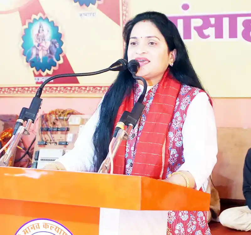 भावगीतों की प्रस्तुति के पश्चात् शक्तिस्वरूपा बहन संध्या शुक्ला जी ने सद्गुरुदेव श्री शक्तिपुत्र जी महाराज की महिमा का वर्णन करते हुए कहा कि ‘‘हमारे धर्मशास्त्रों में, वेदों में, पुराणों में उद्धृत है कि साधु सन्तों के, ऋषियों के दर्शन प्राप्त होजाएं, मंदिरों में स्थापित दिव्य चेतनाओं की प्रतिमाओं के दर्शन होजाएं, तो अक्षय पुण्य की प्राप्ति होती है और पूर्व के पाप नष्ट होजाते हैं। तो भाईयों-बहनों, हमारे सामने स्वयं सच्चिदानंदस्वरूप ऋषियों के ऋषि श्री शक्तिपुत्र जी महाराज साक्षात बैठे हैं और मैं आप लोगों को विश्वास दिलाती हूँ कि उनका दर्शन करते ही आपके द्वारा जो पूर्व में पाप हुए होंगे, सब क्षय हो चुके हैं, आपके सभी पाप नष्ट होगए हैं।