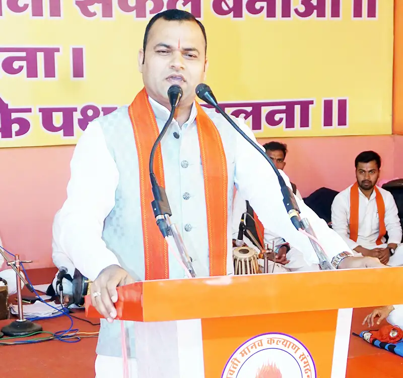 हमारे समाज का सतत पतन इसीलिए हुआ कि कर्म को महत्त्व नहीं दिया गया, पुरुषार्थ को महत्त्व नहीं दिया गया। अपने जीवन को बदलना होगा, धर्ममय और कर्ममय बनाना होगा। कलिकाल के प्रभाव से आप लोग इन्द्रियों के ग़ुलाम बन चुके हो और यह ग़ुलामी पतन की ओर केवल पतन की ओर ले जायेगी। आज जो संघर्ष आपके जीवन में हैं, यदि यही चलता रहा, तो आपकी संतति को और कठिन संघर्ष सहने पड़ेंगे। इस संघर्ष से निकल सकते हो, अपनी संतति को भीषण संघर्ष से बचा सकते हो और इसके लिए आपको एक विचारधारा दी गई है, जिसका पालन करने की आवश्यकता है।